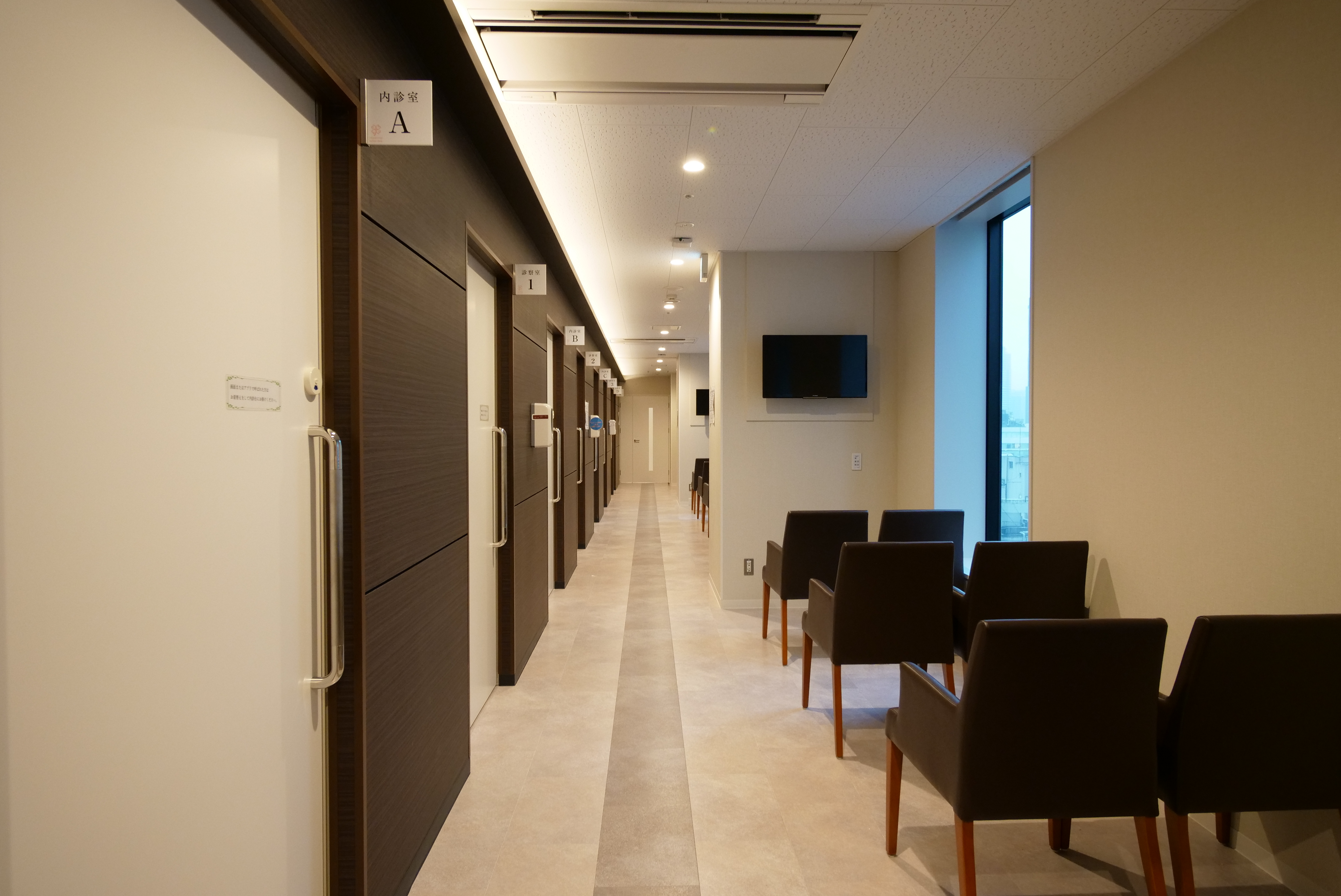 施設・設備はキレイで、お手洗いやメイクアップスペース、ソファ、呼び出しは診察券の番号でモニター表示など、都会の真ん中の最新設備という感じでした。