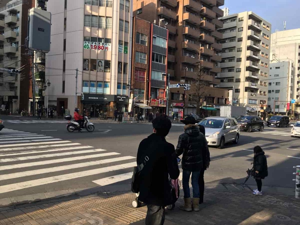 しばらく歩くと大きな十字路に行き当たるので、斜め向かい側に渡ります。