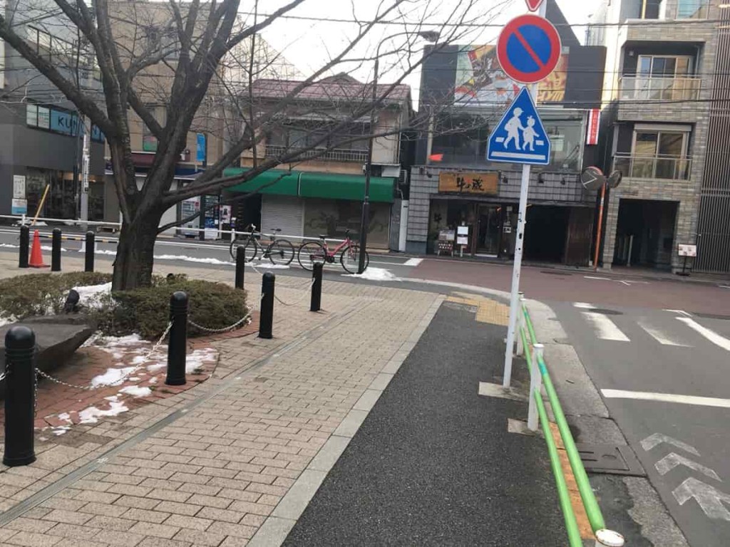 地上に出たら、右側にすすみます。すぐに交差点に出るので、その交差点をさらに右折します。