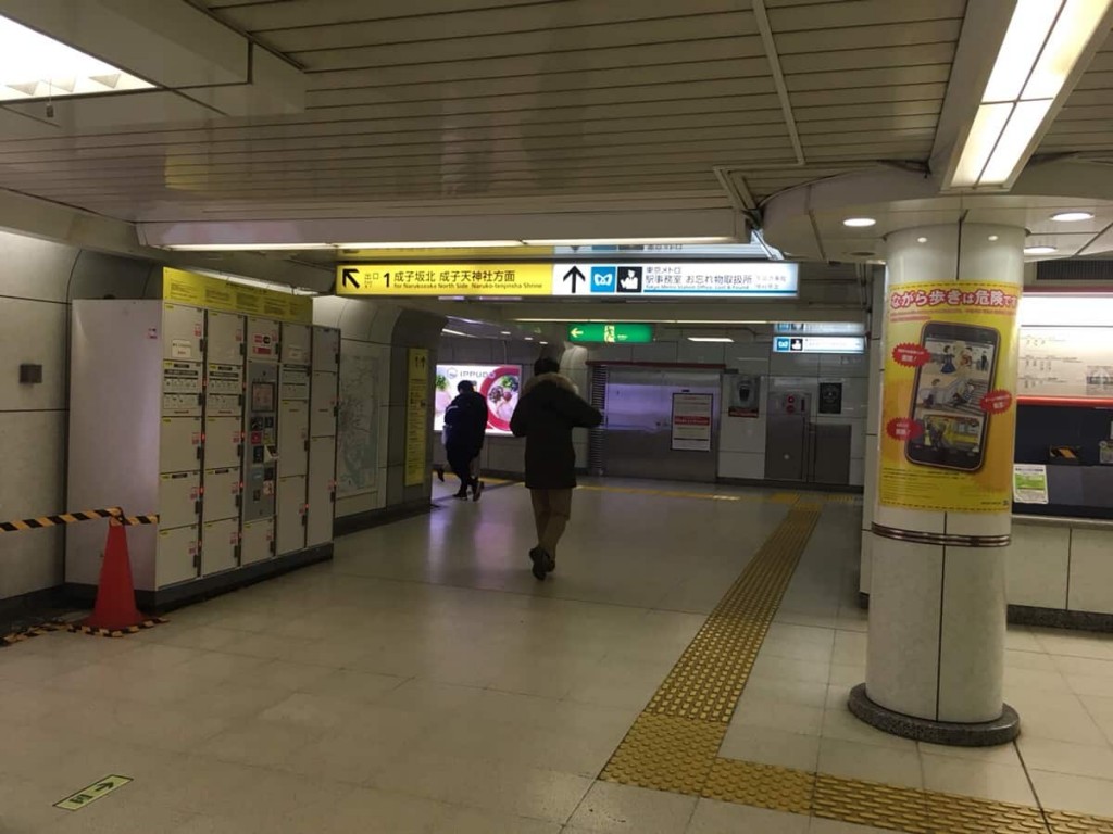 西新宿駅の改札は一つだけです。改札を出たら1番出口の方向に進みます。