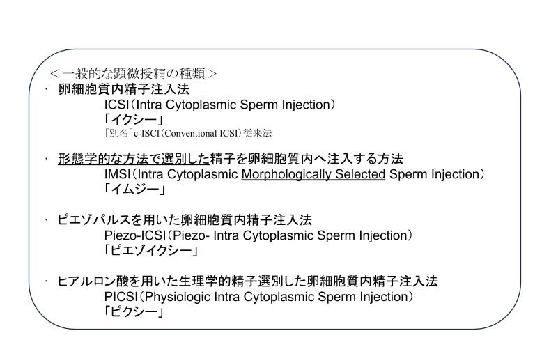 じつは「ICSI」も「IMSI」も「顕微授精」のなかに分類されるのです。