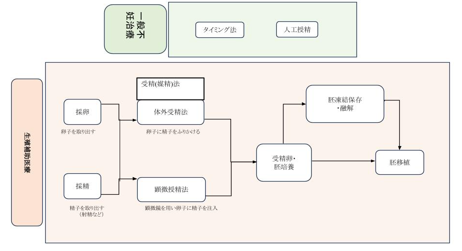 まず、不妊治療には大きく分けると「一般不妊治療」と「生殖補助医療」の2つに分類されます。