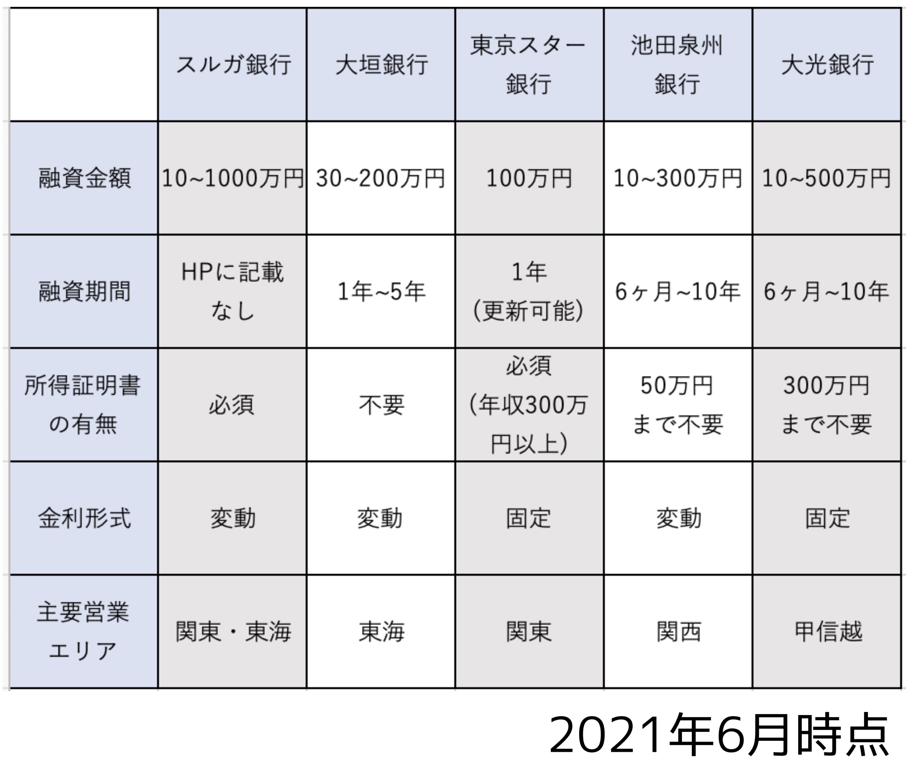 5:大光銀行「借入金額300万円まで、所得証明書は不要」