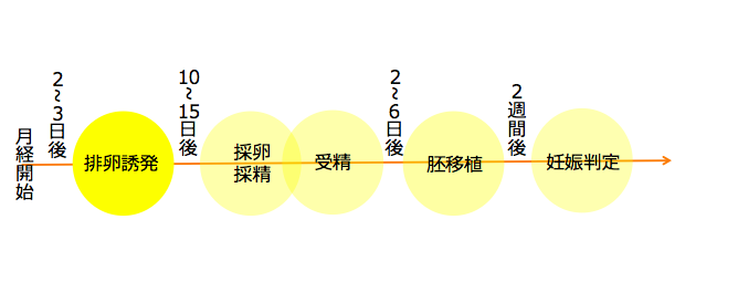 これらの一連の流れは、月経2〜3日目からスタートし、およそ1ヶ月〜1ヶ月半ほどの期間で行われます。個人差はありますが、治療期間中には約10~15回ほどの通院が必要となります。